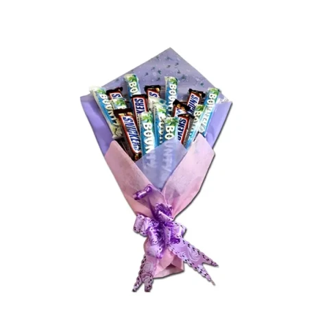 10 pcs bounty per pcs 51 gm & 7 pcs sneakers per pcs 50 gm chocolate in a nice bouquet. Surprise this gift to your dear one's birthday. When you give these gifts than her day is more special in her day.