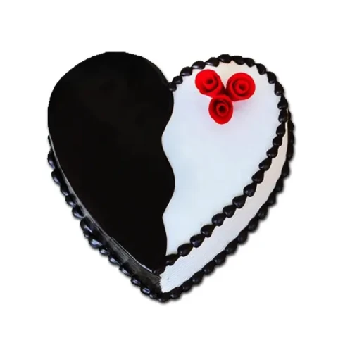 4.4 pounds (2 kg)Chocolate & Vanilla heart cake decorated with roses from Cooper's bakery. 2 days advance order is required.